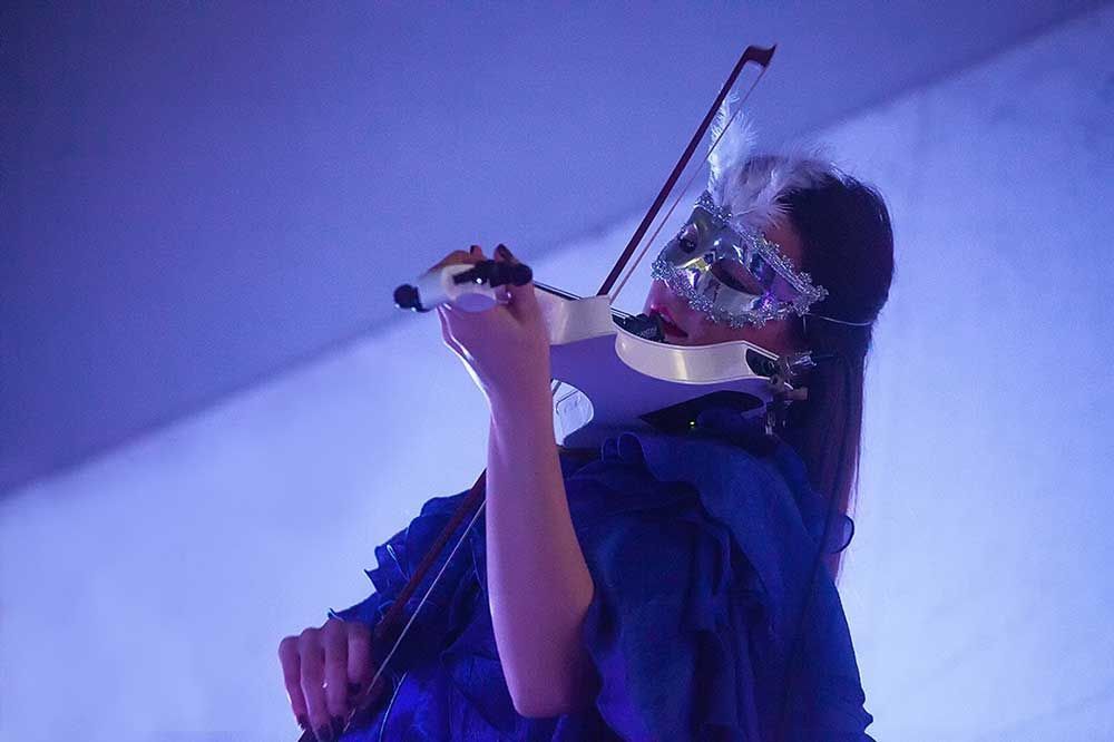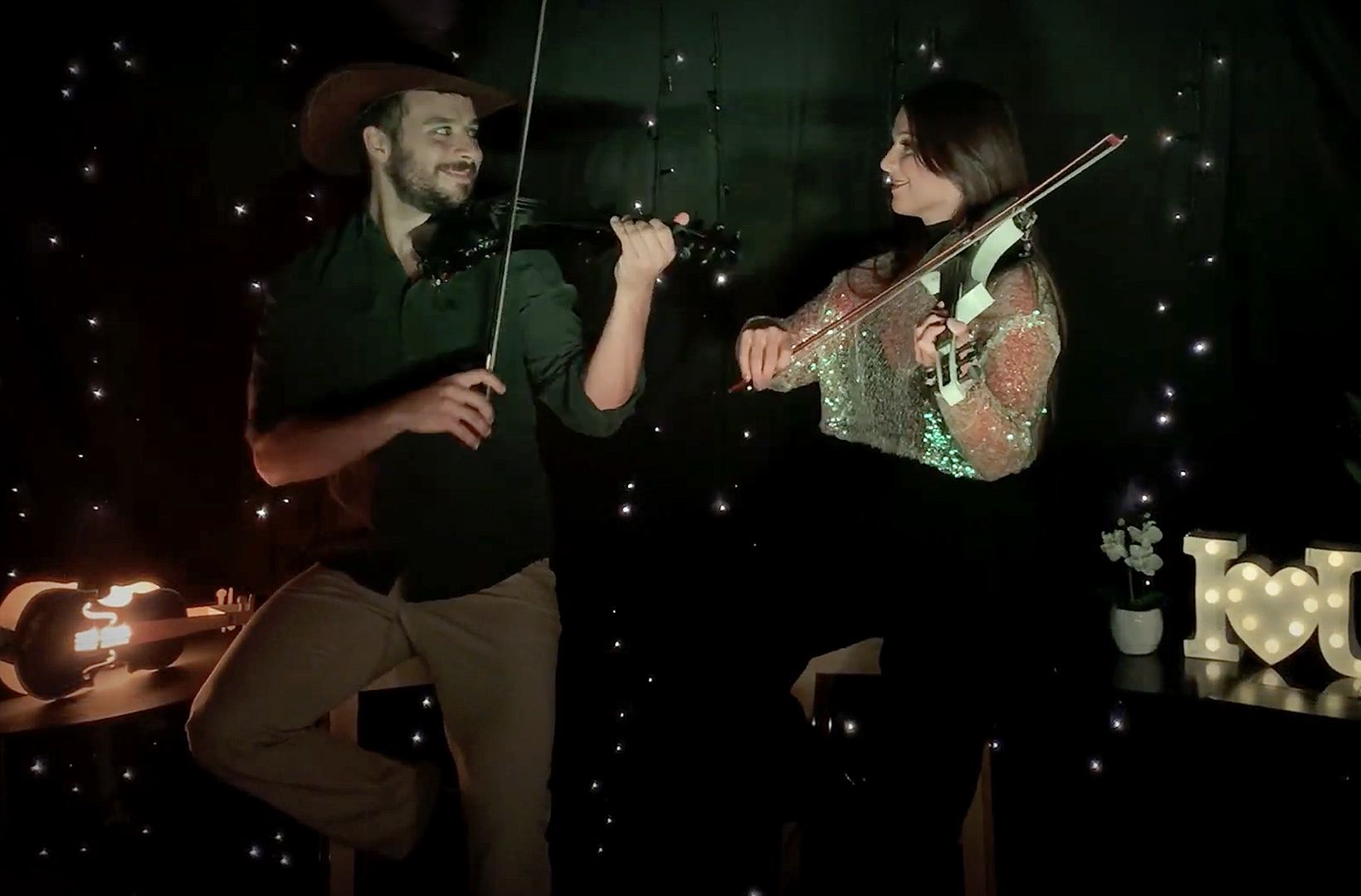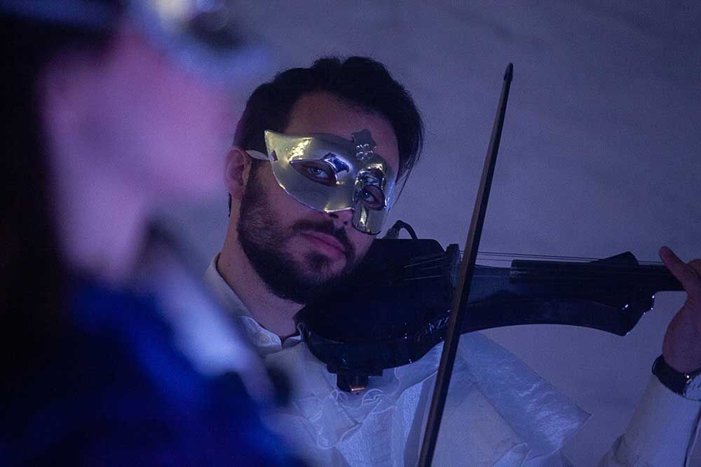 Os violinos eletrónicos preenchem o ambiente com clássicos de Natal e músicas pop rock, criando momentos marcantes e sofisticados.