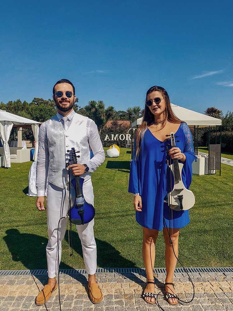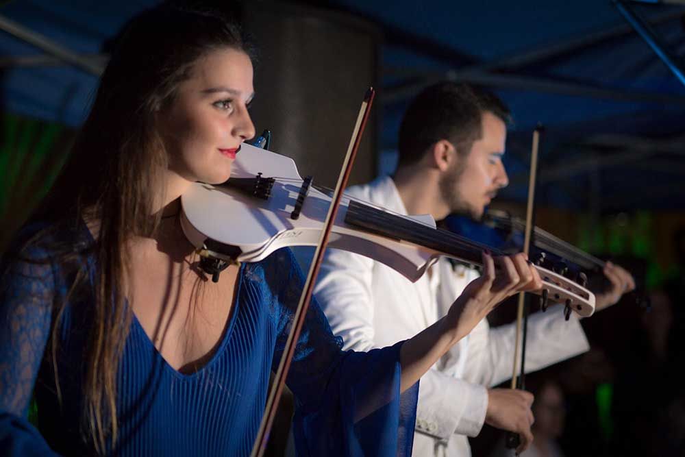 A parceria entre DJ e violino pelos Blue & White combina o contemporâneo com o clássico, ajustando-se perfeitamente a eventos de diferentes estilos.