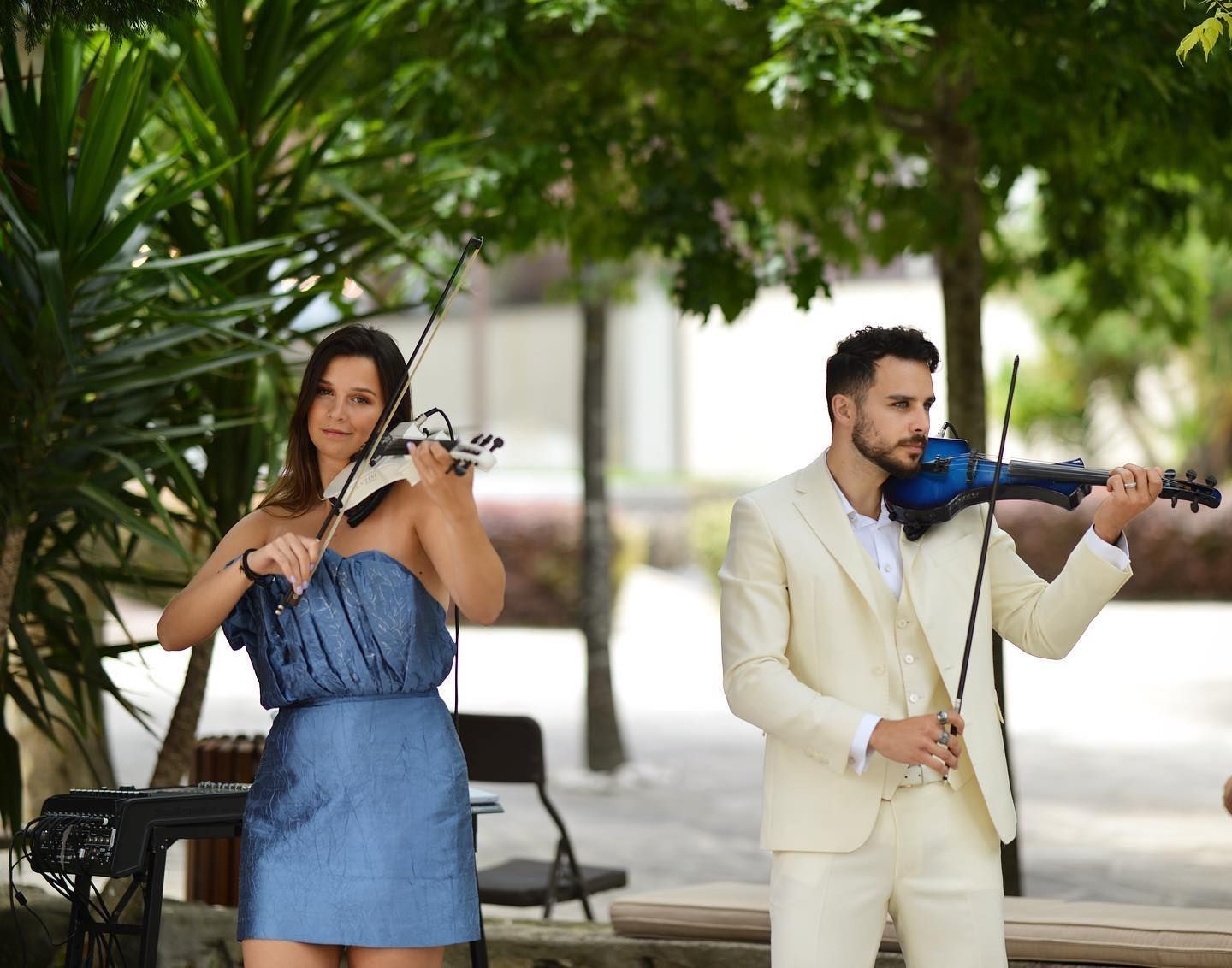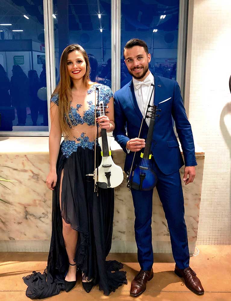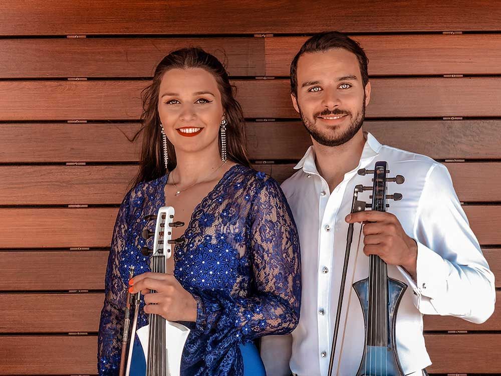 Os Blue & White Duet são um duo composto por Inês e Hugo, dois irmãos apaixonados pelo violino elétrico e pela forma como este instrumento consegue tocar o coração das pessoas e despertar emoções únicas. Com mais de 10 anos de experiência, destacam-se pela originalidade e pela versatilidade que trazem a cada performance, conquistando públicos em diferentes tipos de eventos e espetáculos. Desde concertos de palco a apresentações íntimistas, o trabalho dos Blue & White Duet combina talento, criatividade e um toque único, adaptado a cada ocasião.